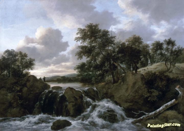 Landscape with a Waterfall, Art Painting by Jacob van Ruisdael