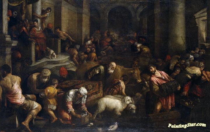 Expulsion Of The Merchants From The Temple, Art Painting by Jacopo Bassano