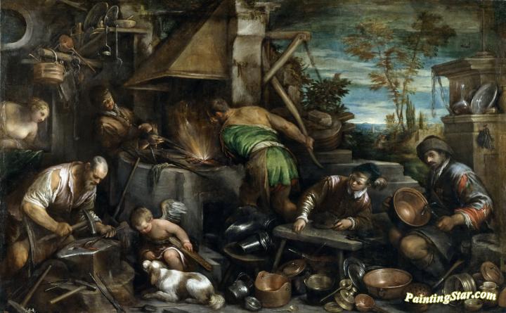 The Forge Of Vulcan, Art Painting by Jacopo Bassano