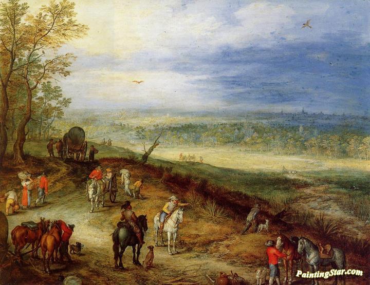 Immense Landscape With Travellers, Art Painting by Jan Bruegel the Elder