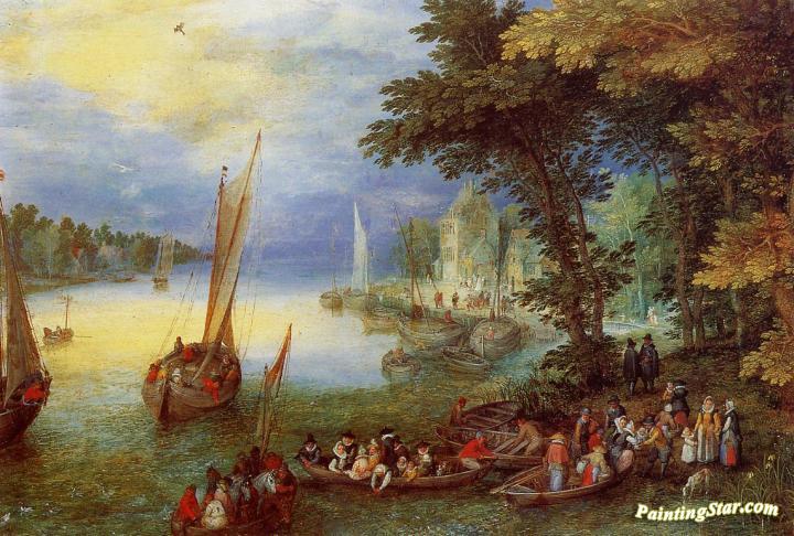 River Landscape, Art Painting by Jan Bruegel the Elder