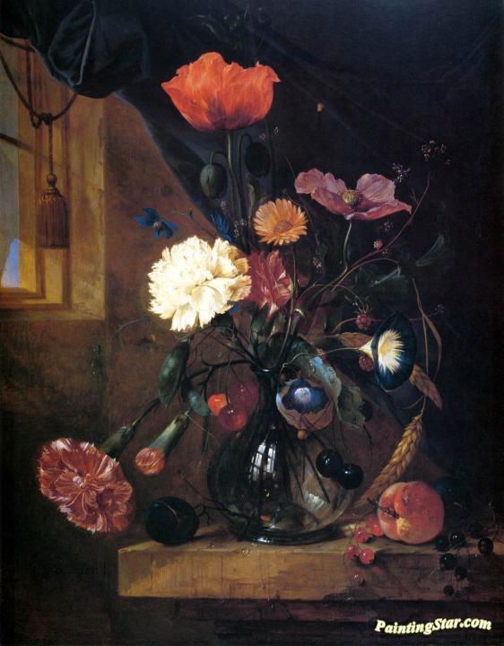 Bouquet in a Glass Vase, Art Painting by Jan Davidsz De Heem