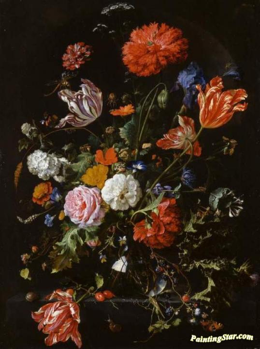 Flowers In A Glass Vase, Art Painting by Jan Davidsz De Heem