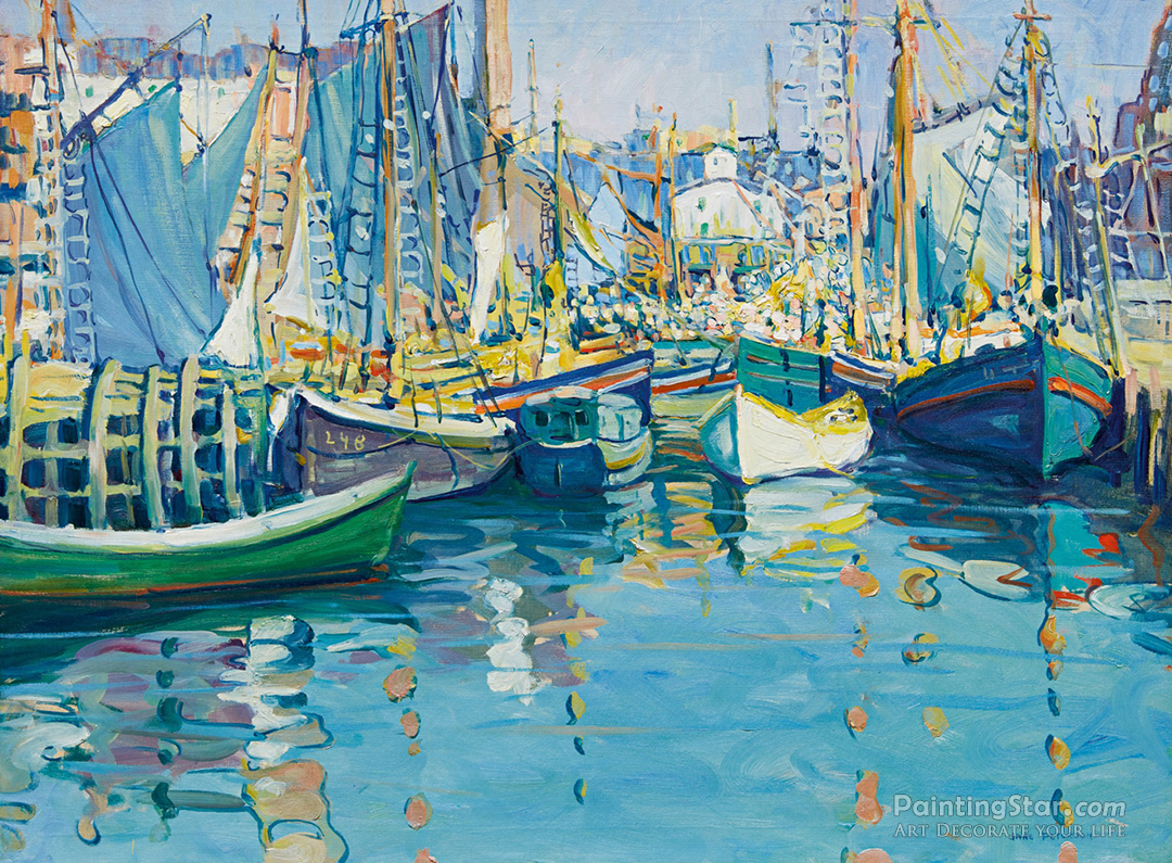 Boats In Harbor, Gloucester, 1916, Art Painting by Jane Peterson