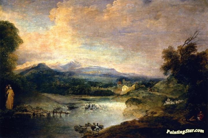 River Landscape, Art Painting by Jean-Antoine Watteau