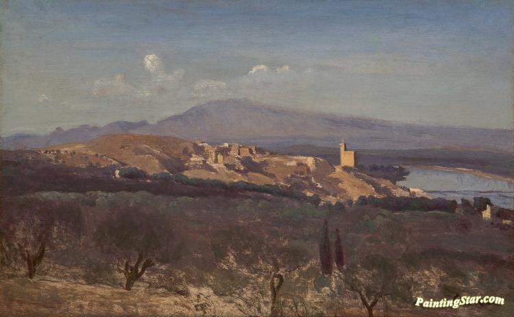 Villeneuve-les-avignon, Art Painting by Jean-Baptiste-Camille Corot