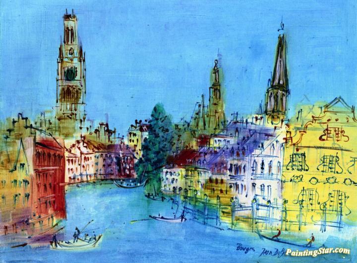 Bruges, Art Painting by Jean Dufy