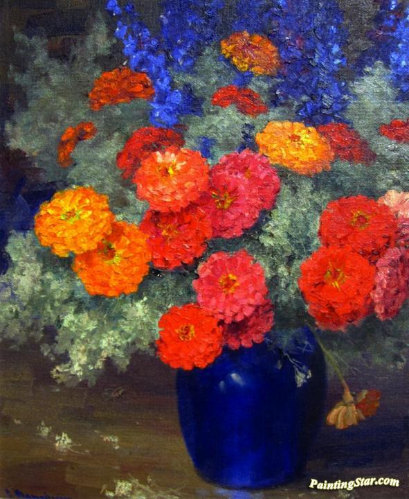 Zinnias, Art Painting by Jean Mannheim