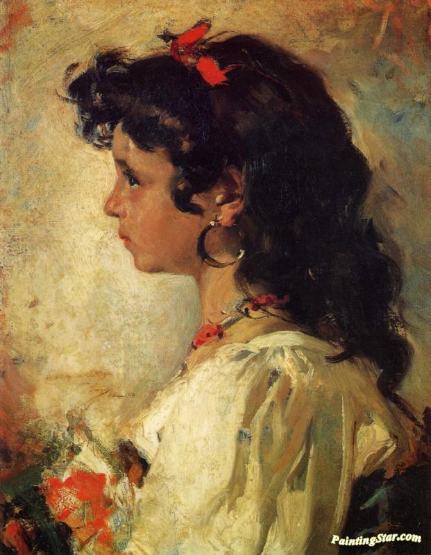 Head of an Italian Girl, Art Painting by Joaquin Sorolla y Bastida
