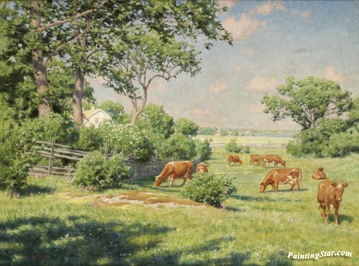 Grazing cows, Art Painting by Johan Krouthén