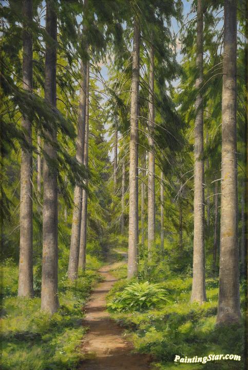 Sunlit Forest Path, Art Painting by Johan Krouthén