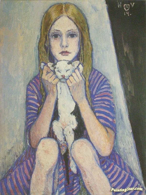 Girl With Cat, Art Painting by Johann Heinrich Vogeler