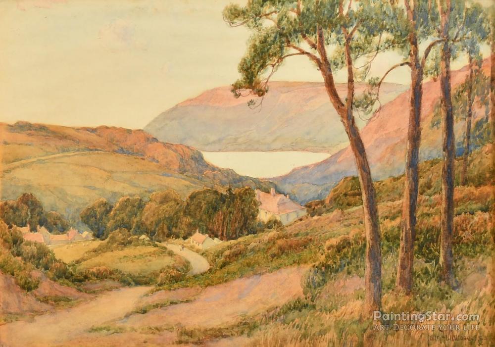 Cottages In A Valley With A View Of A Bay Beyond, Art Painting by John Fullwood