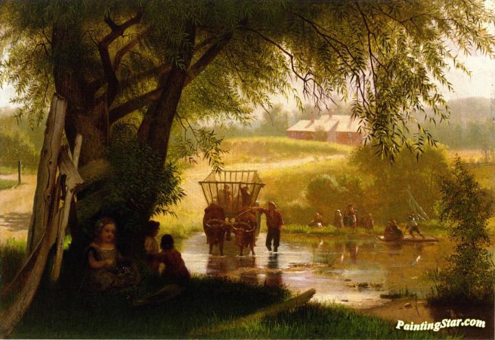 Crossing the Stream, Art Painting by John George Brown