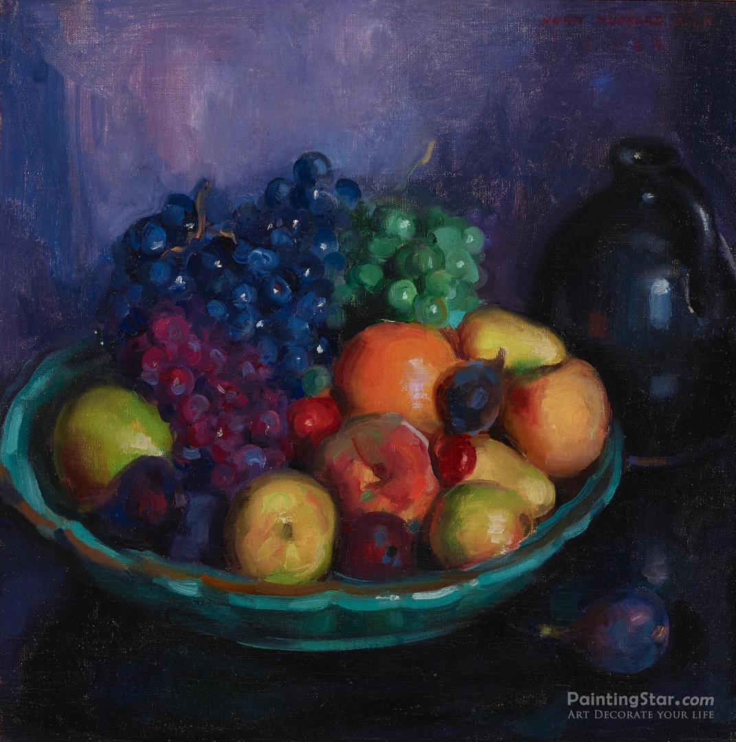 A Bowl Of Fruit On A Table, 1919, Art Painting by John Hubbard Rich