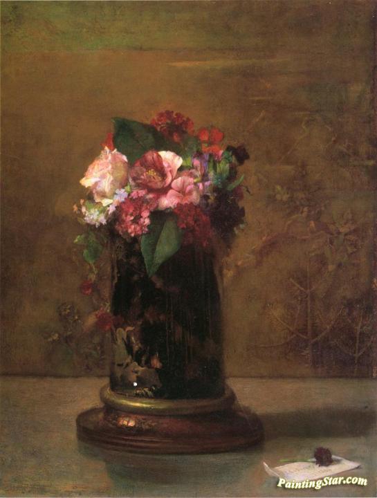 Flowers in a Japanese Vase, Art Painting by John La Farge