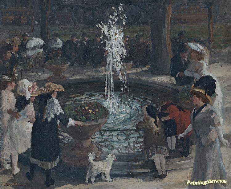 Throbbing Fountain, Madison Square, Art Painting by John Sloan
