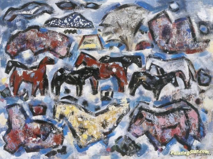 Landscape With Horses, Art Painting by John Ward Lockwood