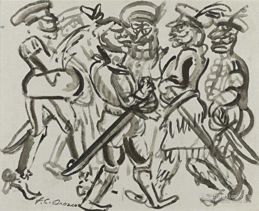 Estado Mayor De Bufones, 1946, Art Painting by Jose Clemente Orozco