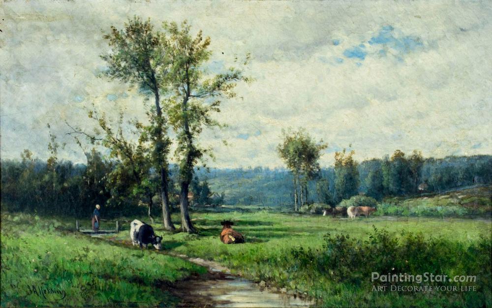 Landscape With Cows, Art Painting by Joseph Antonio Hekking