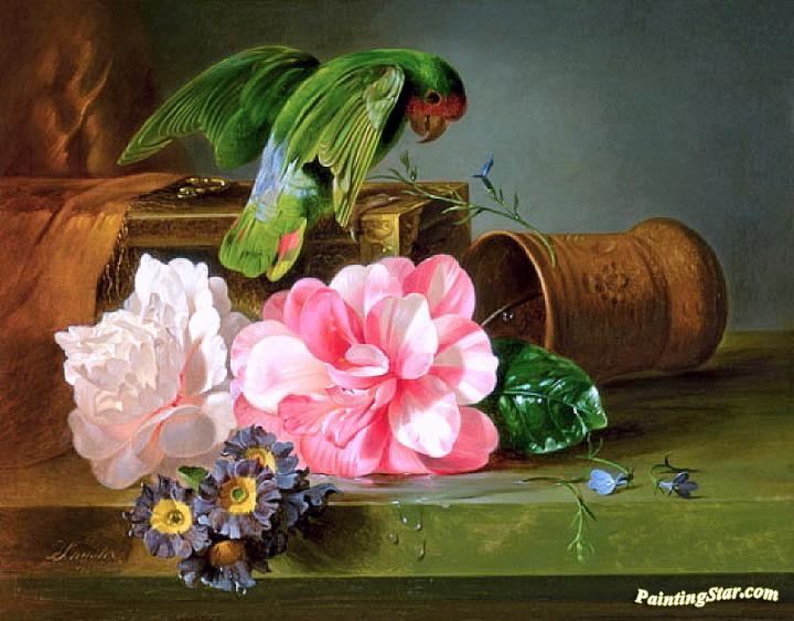 Still Life With Parrot, Art Painting by Joseph Schuster