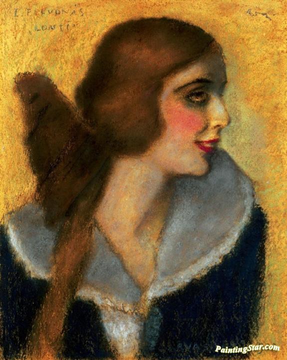 Lili Darvas Playing Lonti, Art Painting by József Rippl-Rónai