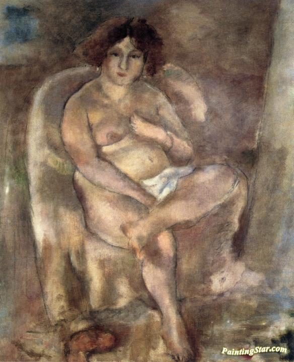 Woman Seated in an Armchair, Art Painting by Jules Pascin