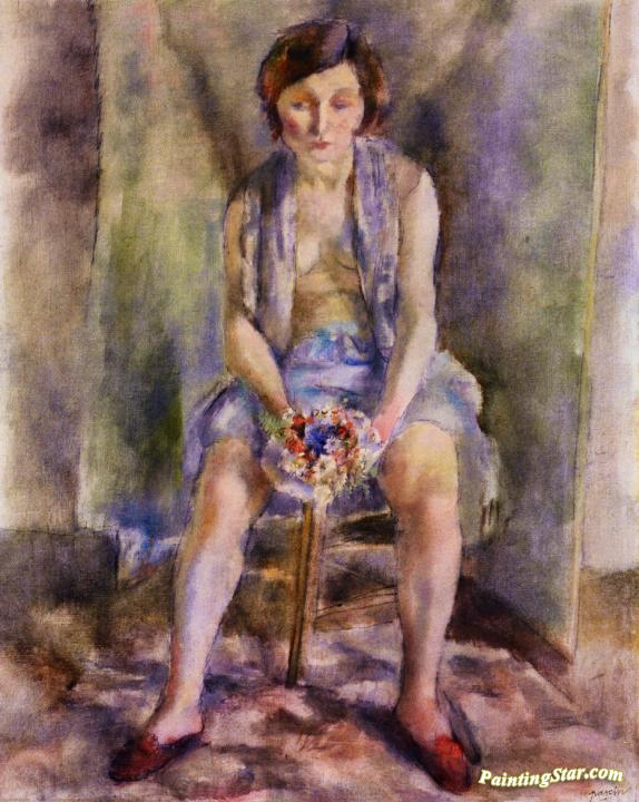 Woman with a Bouquet, Art Painting by Jules Pascin