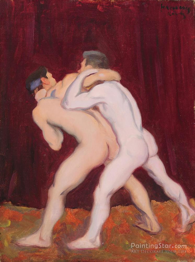 Wrestlers, 1912, Art Painting by Károly Ferenczy