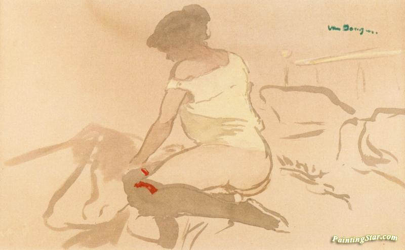 Woman Kneeling On A Bed, Art Painting by Kees Van Dongen