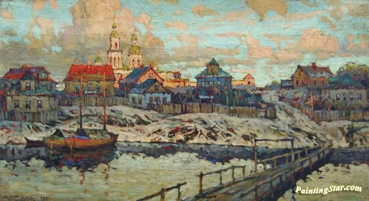 Town on the River, Art Painting by Konstantin Gorbatov
