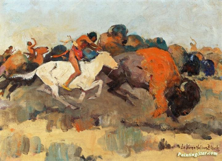 Buffalo Hunt, Art Painting by Laverne Nelson Black