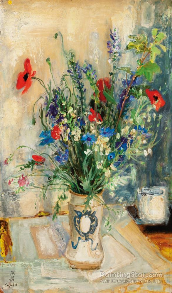 Bouquet De Bleuets Et De Coquelicots, 1960, Art Painting by Le Pho