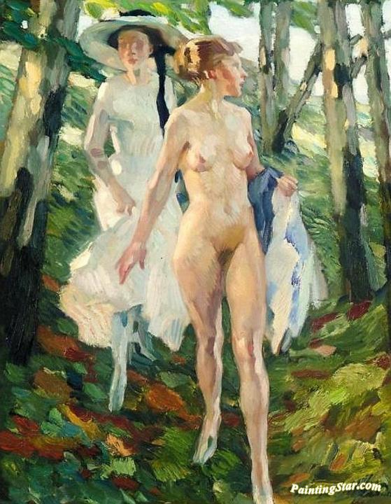 Two Girls In The Woods, Art Painting by Leo Putz