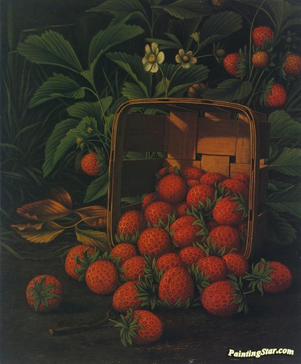 Strawberries Spilling from a Basket and Growing on a Bush, Art Painting by Levi Wells Prentice