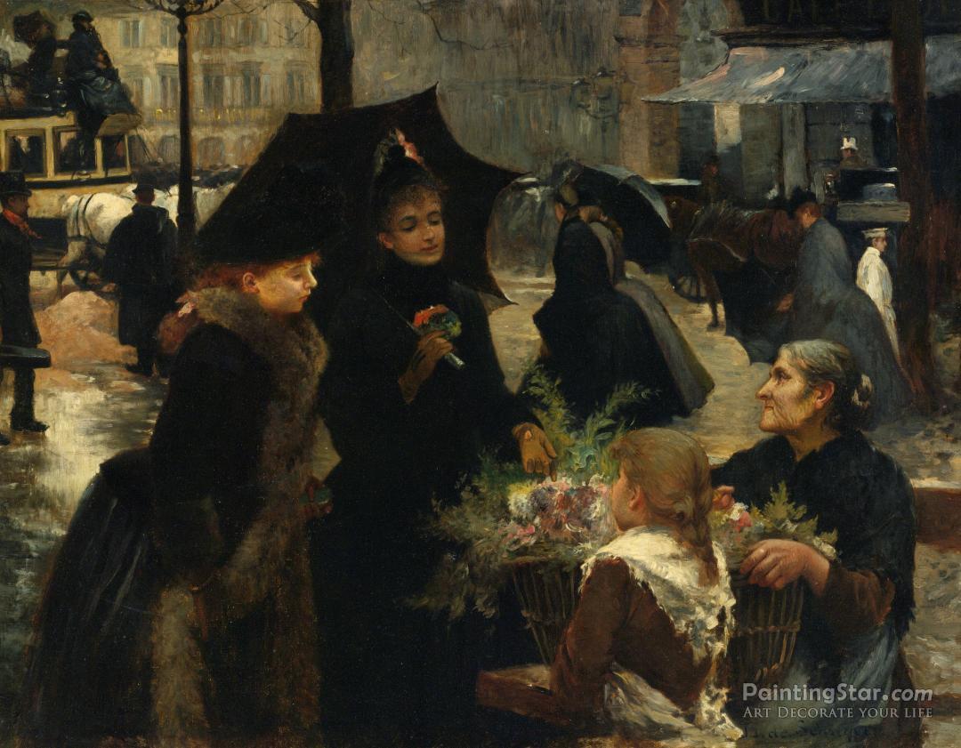 Rainy Day, Flower Seller, Art Painting by Louis Marie De Schryver