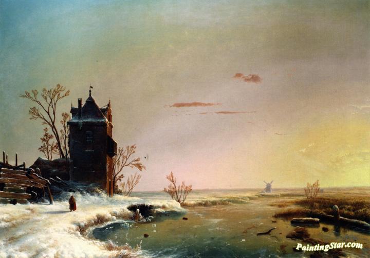 Winter Scene, Holland, Art Painting by Louis Remy Mignot