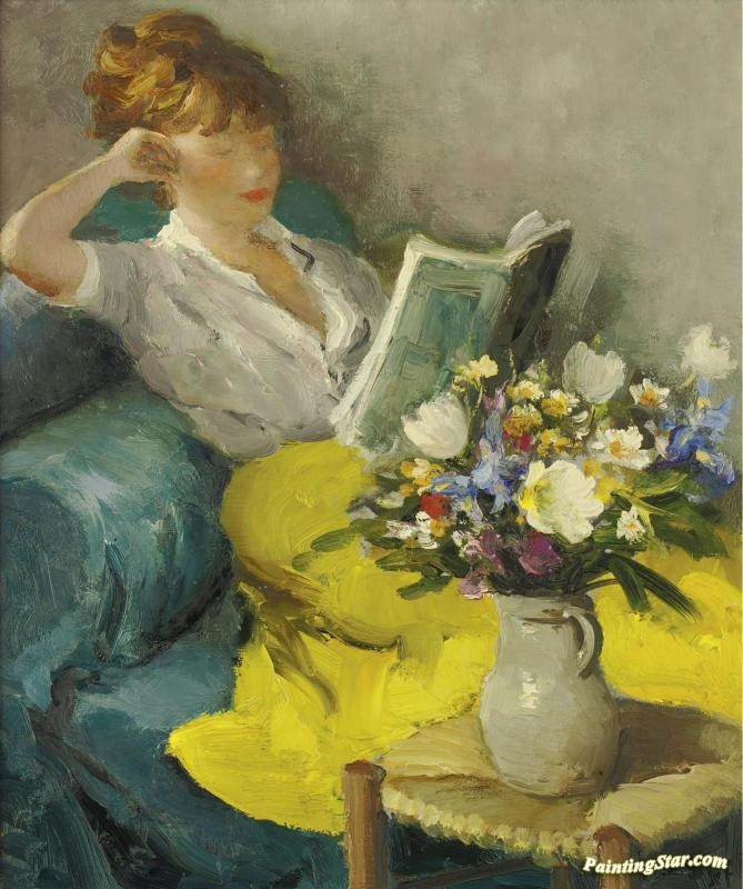 Claudine Reading, Art Painting by Marcel Dyf