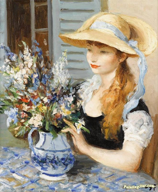 Claudine With A Bouquet, Art Painting by Marcel Dyf