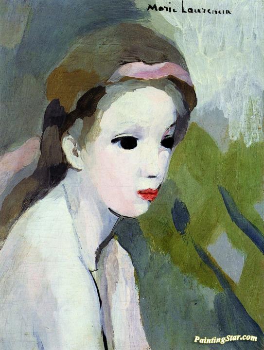 Girl With Pink Ribbon, Art Painting by Marie Laurencin
