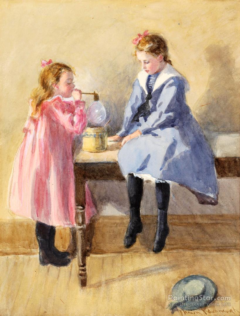 Two Girls Blowing Bubbles, 1899, Art Painting by Marion Kavanaugh Wachtel