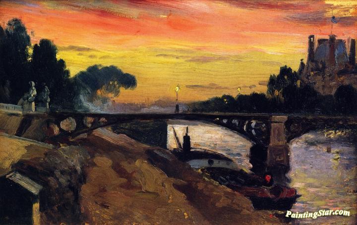 Paris, View Of The Seine, Night, Art Painting by Mathias J. Alten