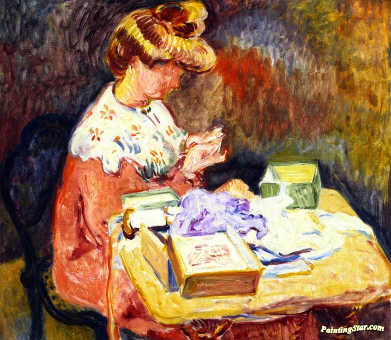 Madame Valtat Sewing, Art Painting by Maurice De Vlaminck