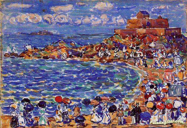 Beach, St. Malo, Art Painting by Maurice Prendergast