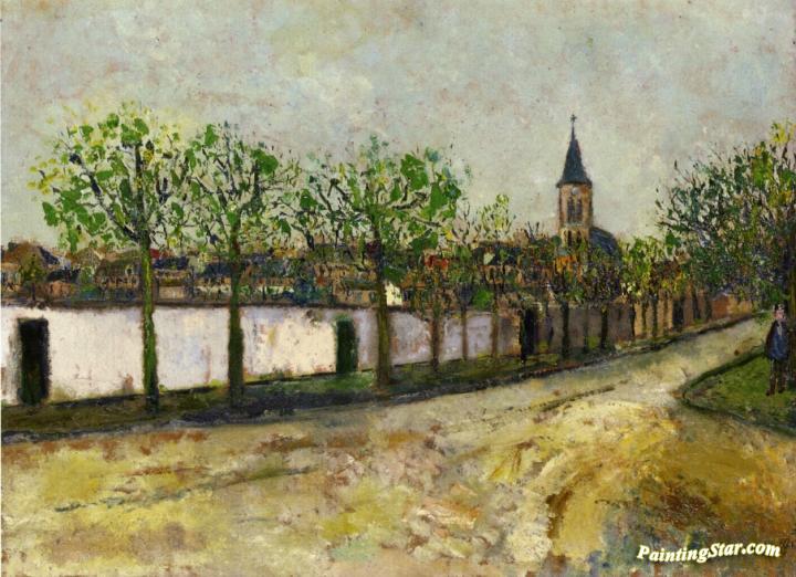 Church and Street in Montmagny, Art Painting by Maurice Utrillo