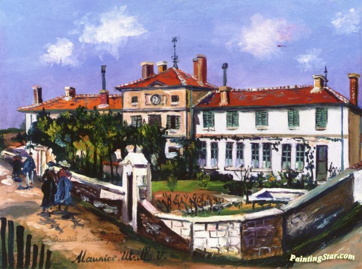 City Hall and School in Pommiers (Rhône), Art Painting by Maurice Utrillo