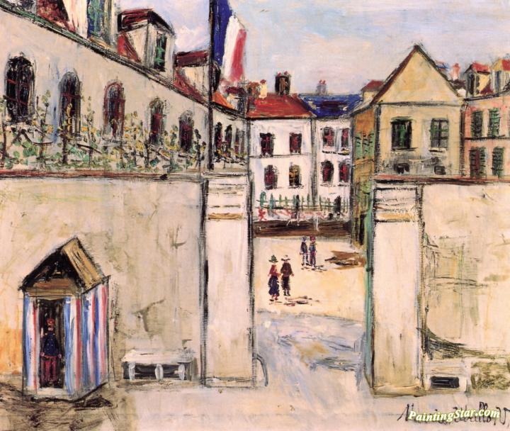 Company Barracks (Oise), Art Painting by Maurice Utrillo