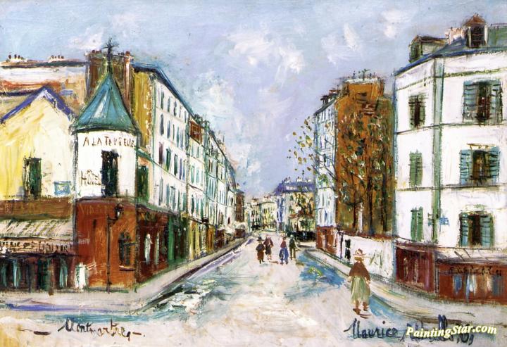 Le Restaurant à La Tourelle, Montmartre, Art Painting by Maurice Utrillo