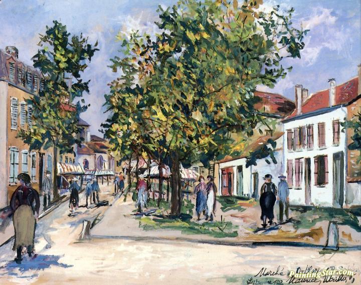Market at Orthez (B. Pyrénés), Art Painting by Maurice Utrillo