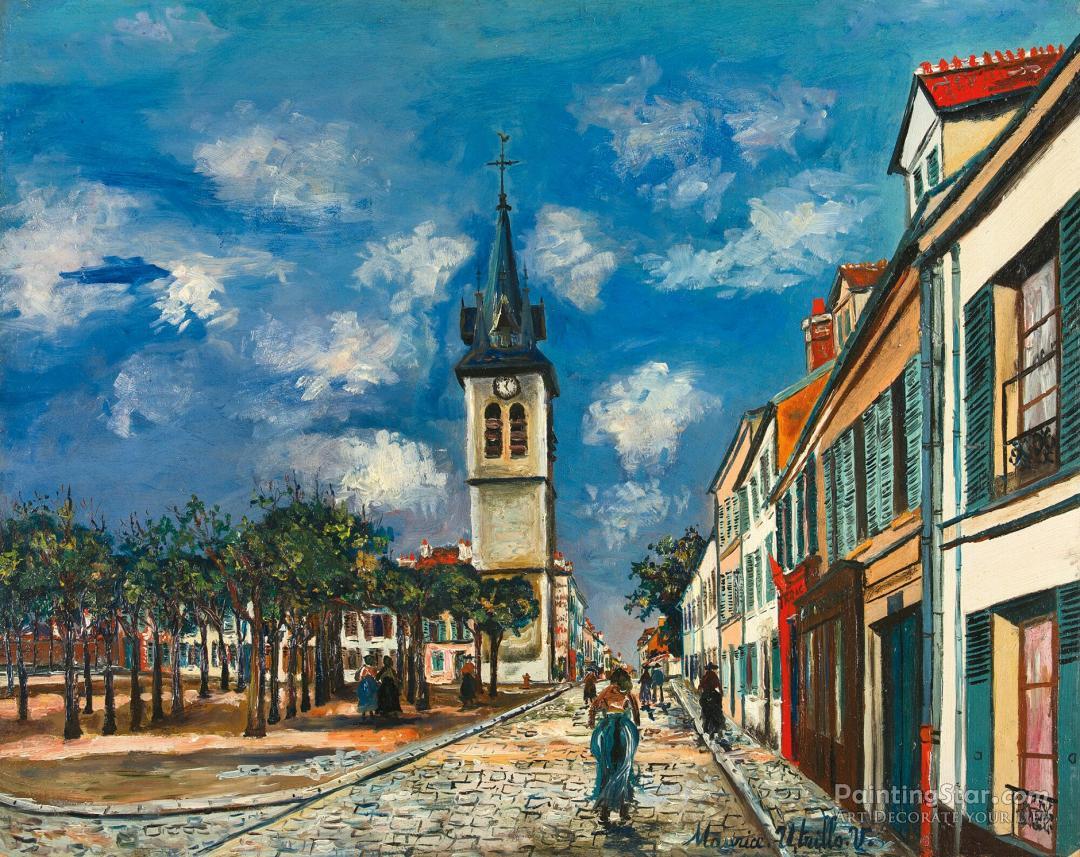 Melun (seine-et-marne) Place Saint Barthelemy And The Church, Art Painting by Maurice Utrillo